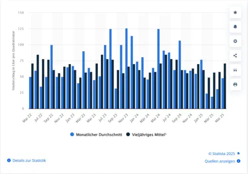 Monatlicher Niederschlag in Deutschland (in Liter pro m²)